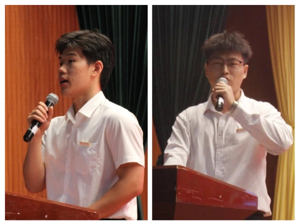 22工管1班廖振宇代表在校生发言,他从适应与成长、未知与可能、目标与知行三个方面分享大学的成长经验,倡导大家尽快适应大学生活,勇敢地迈出舒适区,知行合一,持之以恒。 24工管杨明明代表新生发言,他站在新生的角度,结合对冠军白菜大厅的第一印象,表达了对于即将开启的人生新篇章满怀憧憬与信心。